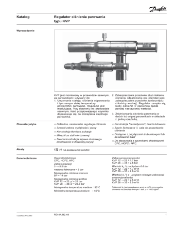 Katalog, tabele wydajności i doboru dla regulatorów KVP