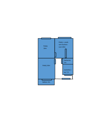 Pokój 16m Pokój z aneksem kuchennym 20m Spiżarnia 2m Pokój 16m Łazienka z wc 7,5 Balkon 2m