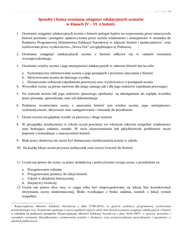 Sposoby sprawdzania osiągnięć - historia klasy 4-6