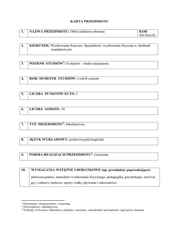 KARTA PRZEDMIOTU 1. NAZWA PRZEDMIOTU: Obóz militarno