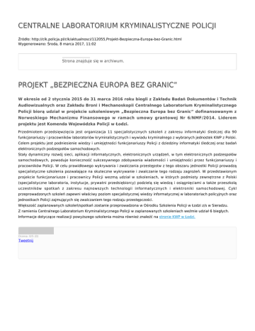 CENTRALNE LABORATORIUM KRYMINALISTYCZNE POLICJI Źródło: http://clk.policja.pl/clk/aktualnosci/112055,Projekt-Bezpieczna-Europa-bez-Granic.html Wygenerowano: Środa, 8 marca 2017, 11:02 Strona znajduje się w archiwum. PROJEKT „BEZPIECZNA EUROPA BEZ GRANIC” W okresie od 2 stycznia 2015 do 31 marca 2016 roku biegli z Zakładu Badań Dokumentów i Technik Audiowizualnych oraz Zakładu Broni i Mechanoskopii Centralnego Laboratorium Kryminalistycznego Policji biorą udział w projekcie szkoleniowym „Bezpieczna Europa bez Granic” dofinansowanym z Norweskiego Mechanizmu Finansowego w ramach umowy grantowej Nr 6/NMF/2014. Liderem projektu jest Komenda Wojewódzka Policji w Łodzi. Przedmiotem przedsięwzięcia jest organizacja 11 specjalistycznych szkoleń z zakresu informatyki śledczej dla 90 funkcjonariuszy i pracowników laboratoriów kryminalistycznych i wywiadu kryminalnego z wybranych jednostek KWP z Polski. Celem projektu jest podniesienie wiedzy i umiejętności funkcjonariuszy Policji z dziedziny informatyki śledczej oraz badań elektronicznych podzespołów samochodowych. Stały dynamiczny rozwój sieci, aplikacji informatycznych, elektronicznych urządzeń, w tym elektronicznych podzespołów samochodowych, powoduje konieczność sukcesywnego zdobywania wiadomości i umiejętności przez funkcjonariuszy i pracowników Policji. W celu prawidłowego wykrywania i zwalczania przestępstw z tego obszaru jednostki Policji prowadzą specjalistyczne szkolenia pozwalające na skuteczne wykrywanie i zwalczanie tego rodzaju zagrożeń. W przedstawionym projekcie funkcjonariusze i pracownicy Policji wezmą udział w szkoleniach, w których podmioty zewnętrzne z Polski (specjalistyczne laboratoria, instytucje, prywatni przedsiębiorcy) podzielą się wiedzą i osiągnięciami a także przeszkolą uczestników spotkań z zakresu najnowszych technologii informatycznych i elektroniki samochodowej. Cykl przeprowadzonych szkoleń zapewni właściwy poziom specjalistycznej wiedzy informatycznej w laboratoriach policyjnych oraz jednostkach Policji zajmujących się zwalczaniem tego rodzaju przestępczości. Większość zaplanowanych szkoleń/spotkań zostanie przeprowadzona w Ośrodku Szkolenia Policji w Łodzi z/s w Sieradzu. Z ramienia Centralnego Laboratorium Kryminalistycznego Policji w zaplanowanych szkoleniach weźmie udział 6 biegłych. Informacje dotyczące realizacji powyższego szkolenia można również znaleźć na stronie KWP w Łodzi. Ocena: 0/5 (0) Tweetnij