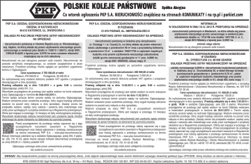 Co wtorek ogłoszenia PKP S.A. NIERUCHOMOŚCI