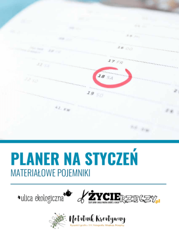 PLANER NA STYCZEŃ MATERIAŁOWE POJEMNIKI Spinacze do papieru platają się po całym biurku i co chwile gubisz gumkę do mazania? W takim razie FILCOWA SAKIEWKA dobrym pomysłem jest zrobienie mini pojemników na drobne biurowe gadżety.Oczywiscie mozna wykonać te projekty również w wersji XXL! FILCOWE PUDEŁKO Składniki: - nożyczki - filc - sznurek Składniki: - filc - sznurek - nożyczki - klej uniwersalny, bądź na gorąco Sposób przygotowania: 1. Wycinamy kształt składający się z 5 identycznych kwadratów, tak jak jest to przedstawione na obrazku. 2. Każdy brzeg boku danego kwadratu nie bedącego podstawą przyklejamy do siebie, jak na obrazkach. 3. Ja wyciełam w bokach dziurki, przelekłam przez nie sznurek i zawiązałam supełki. Powstały tym sposobem mini rączki. Sposób przygotowania: 1. Z filcu wycinamy okrąg. Następnie wycinamy brzegi okręgu w jakiś miły dla oka wzór. Około jeden, pół centymetra od brzegu okręgu, w zalezności od wielkości naszej sakiewki,co jakiś czas nacianymy materiał. Przez powstałe dziurki przewlekamy sznurek. Obracamy skaiewkę na drugą stronę i związujemy supelki na każdym z końców. STYCZEŃ 2017 PONIEDZIAŁEK WTOREK ŚRODA CZWARTEK PIĄTEK SOBOTA NIEDZIELA 1 2 3 4 5 6 7 8 9 10 11 12 13 14 15 16 17 18 19 20 21 22 23 24 25 26 27 28 29 30 31 CELE: NOTATKI: