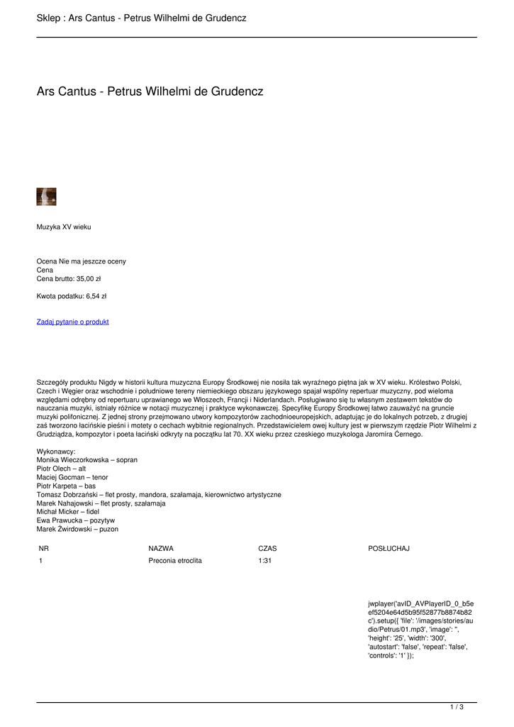 Sklep : Ars Cantus - Petrus Wilhelmi de Grudencz