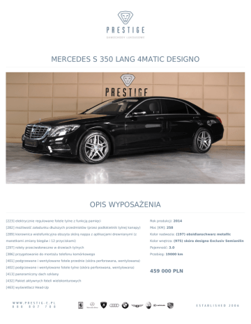 MERCEDES S 350 LANG 4MATIC DESIGNO OPIS WYPOSAŻENIA