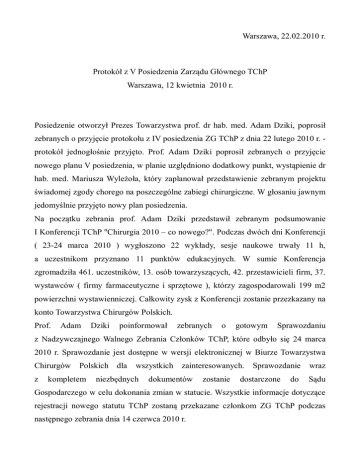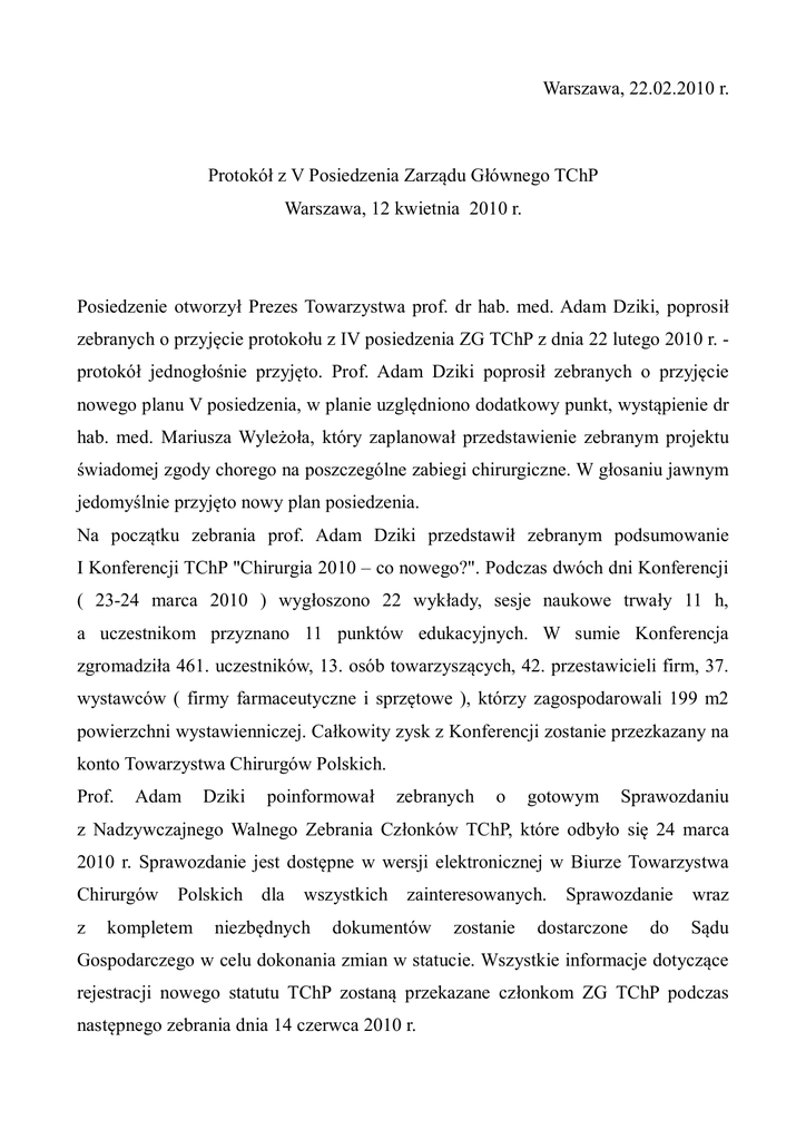 V Posiedzenie ZG TChP - Warszawa, 12.04.2010r.