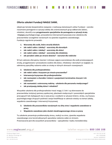 Oferta szkoleń Fundacji NAGLE SAMI