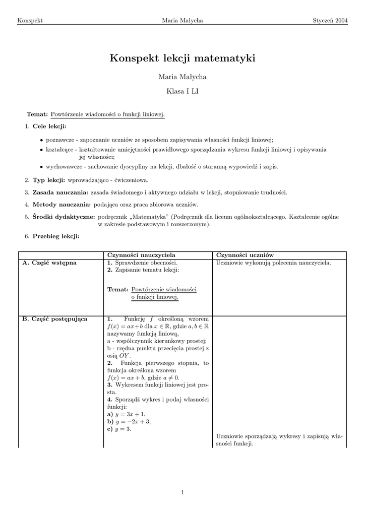 Konspekt lekcji matematyki