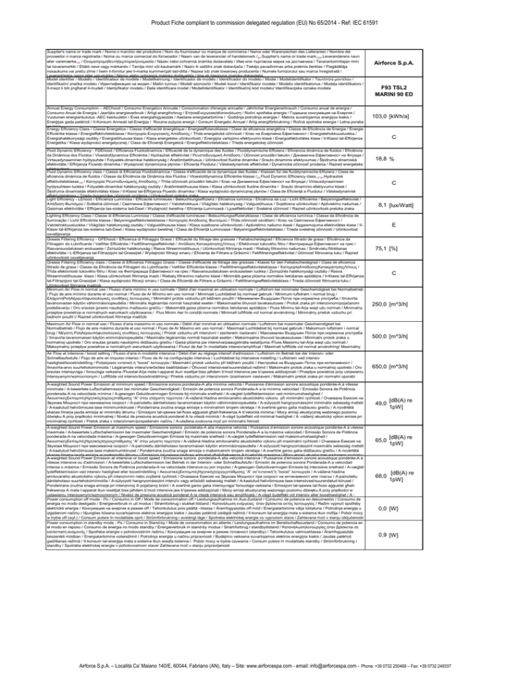Product Fiche compliant to commission delegated regulation (EU) No 65/2014 - Ref: IEC 61591