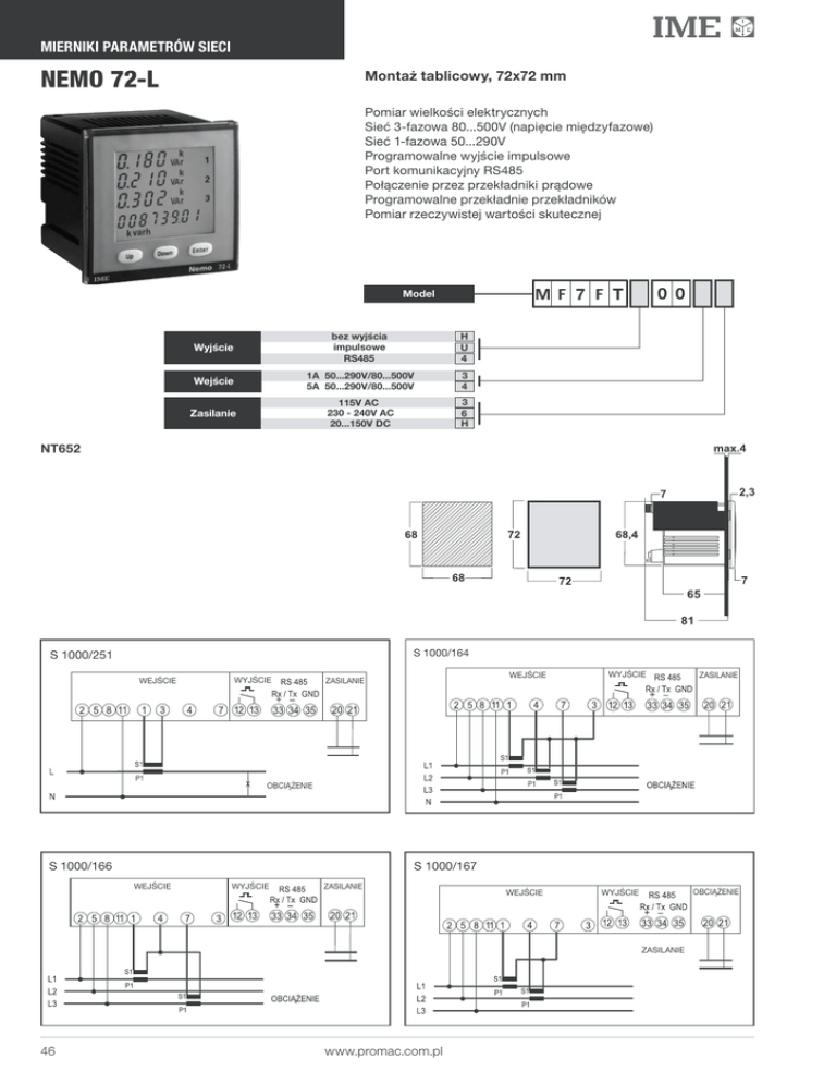 karta katalogowa miernika Nemo 72-L - Pro-Mac
