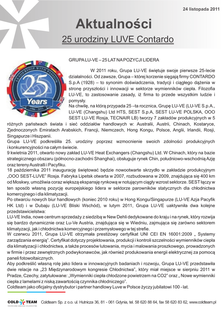 25 lat Luve2 - COLDTEAM Sp. z oo