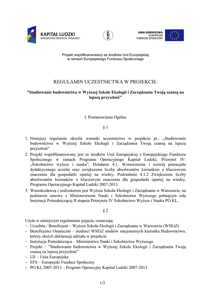 regulamin POKL 4.1.2 - Wyższa Szkoła Ekologii i Zarządzania