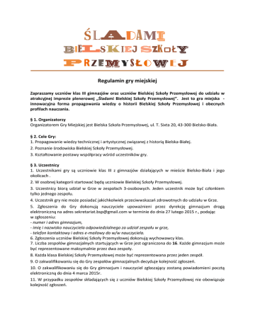Regulamin gry miejskiej dla gimnazjalistów „Bielska Szkoła