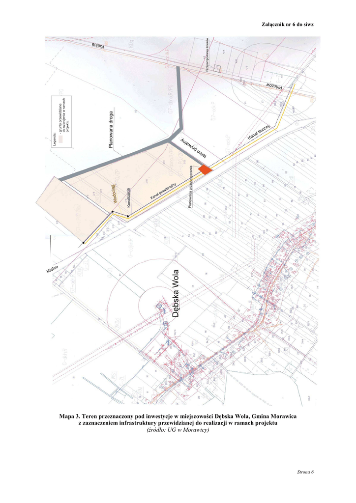 Załącznik nr 6 do siwz Mapa 3. Teren przeznaczony pod inwestycje w miejscowości Dębska Wola, Gmina Morawica z zaznaczeniem infrastruktury przewidzianej do realizacji w ramach projektu (źródło: UG w Morawicy) Strona 6