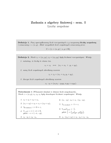 Definicja 2. Niech z1 = (x1 , y1 ), z2 = (x2 , y2 ) będą liczbami rzeczywistymi. Wtedy:
