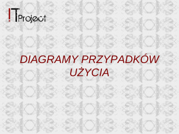 DIAGRAMY PRZYPADKÓW UŻYCIA Co to jest? • Diagram przypadków użycia opisuje system z punktu widzenia użytkownika, pokazuje co robi system, a nie w jaki sposób to robi. • Diagram ten zazwyczaj nie daje nam zbyt wielu informacji, dlatego zawsze potrzebna jest do niego dokumentacja, w której będziemy mieli dobrze opisany przypadek użycia. Aktorzy? Aktorzy reprezentują spójny zbiór ról, jakie odgrywają użytkownicy w czasie interakcji z danym przypadkiem użycia. Aktorzy mogą reprezentować stanowiska i funkcje w danej organizacji, mogą to być także systemy zewnętrzne aplikacji (podsystem, baza danych itd.) czy też urządzenia. Aktorzy są najczęściej prezentowani jako proste postacie. Inną dozwoloną notacją jest kwadrat znany z diagramów klas wraz ze stereotypem <>. Nazwą aktora powinien być rzeczownik. Nawet jeśli firma zatrudnia wielu sprzedawców, to z puntu widzenia systemu będą oni obsługiwani jednakowo. Przypadek użycia Użytkownicy projektowanego przez nas systemu (aktorzy), oczekują od niego, aby oferował on określone funkcjonalności. Każdy z aktorów potrzebuje innej funkcjonalności systemu (jednak mogą się one miejscami nakładać, a więc pewne funkcje mogą być potrzebne jednocześnie kilku aktorom). Przypadek użycia Funkcjonalności to jednocześnie nasze przypadki użycia. Oficjalnie przypadek użycia jest specyfikacją akcji i ich wariantów, które poprzez interakcje z aktorami systemu, system może wykonać. Najprościej rzecz ujmując, jest on działaniem, jakie realizuje system w odpowiedzi na aktywność aktora. Przypadki użycia na diagramach UML prezentuje się w postaci elips z umieszczonymi w środku nazwami. Związki Związek określa nam zależność pomiędzy aktorem a daną funkcjonalnością. Głównym związkiem jest asocjacja. To ona jest najczęściej spotykana. Mówi nam o wystąpieniu dwukierunkowej komunikacji pomiędzy przypadkiem użycia a aktorem. Jeśli komunikacja ta przebiega tylko w jednym kierunku, można kierunek ten zaznaczyć strzałką. W przypadku diagramów użycia, związkom nie nadaje się nazw!!! Związki Innym związkiem jest zawieranie. „Zawierany przypadek użycia” nie jest wykonywany samodzielnie. Związek zawierania ma postać przerywanej strzałki ze stereotypem <>, biegnącej od przypadku użycia zawierającego do zawieranego. Związku zawierania używa się wówczas, gdy z kilku innych przypadków użycia można wydzielić pewną część wspólną. Związki Kolejnym związkiem jest rozszerzanie. Związek ten pozwala na wydzielenie przypadku użycia, który w pewnych sytuacjach może zostać wzbogacony o dodatkowe opcje. Wygląda on tak samo jak związek zawierania. Związki Ostatnim typem związku jest uogólnienie. Jak sama nazwa wskazuje, ma on na celu uogólnienie aktorów bądź przypadków użycia, przy czym obiekt uogólniany posiada wszystkie cechy obiektu ogólnego. Uogólnienie ma postać strzałki z linią ciągłą i zamkniętym grotem. Nasze przypadki użycia Dziękujemy za uwagę