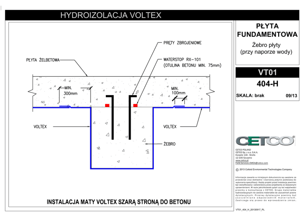HYDROIZOLACJA VOLTEX FUNDAMENTOWA (przy naporze wody) VT01 404-H SKALA: brak 09/13 CETCO POLAND CETCO Sp. z o.o. S.K.A. Korpele 13A - Strefa 12-100 Szczytno www.cetco.pl [email protected] C 2013 Colloid Environmental Technologies Company Informacje zawarte w niniejszym dokumencie s uwa ane za prawdziwe oraz dok adne i stanowi jedynie podstaw do wykonania specyfikacji. Ka dy projekt przed instalacj powinien by zweryfikowany i zatwierdzony przez projektanta ze stosownymi uprawnieniami. W razie jakichkolwiek pyta czy te w tpliwo ci prosimy o konsultacj z CETCO. Grupa materia w hydroizolacyjnych nie zawiera materia w do uszczelnie przerw dylatacyjnych. Przerwy dylatacyjne powinny by uszczelniane odpowiednim materia em. Zastrzega si prawo do wprowadzenia zmian. VT01_404_H_20130917_PL
