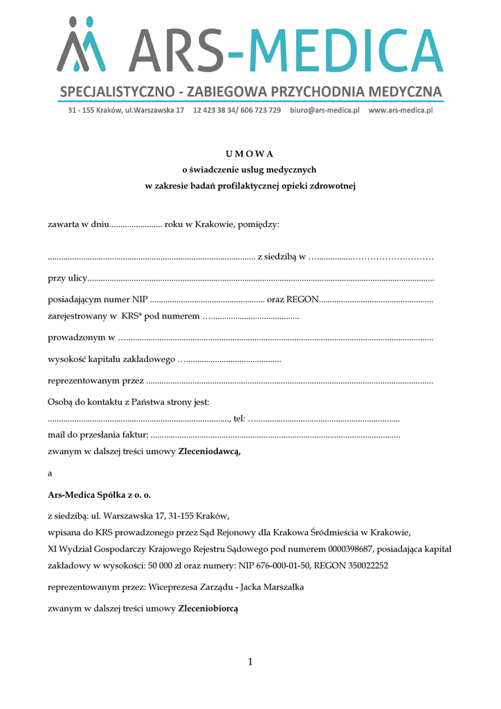Umowa - Ars Medica
