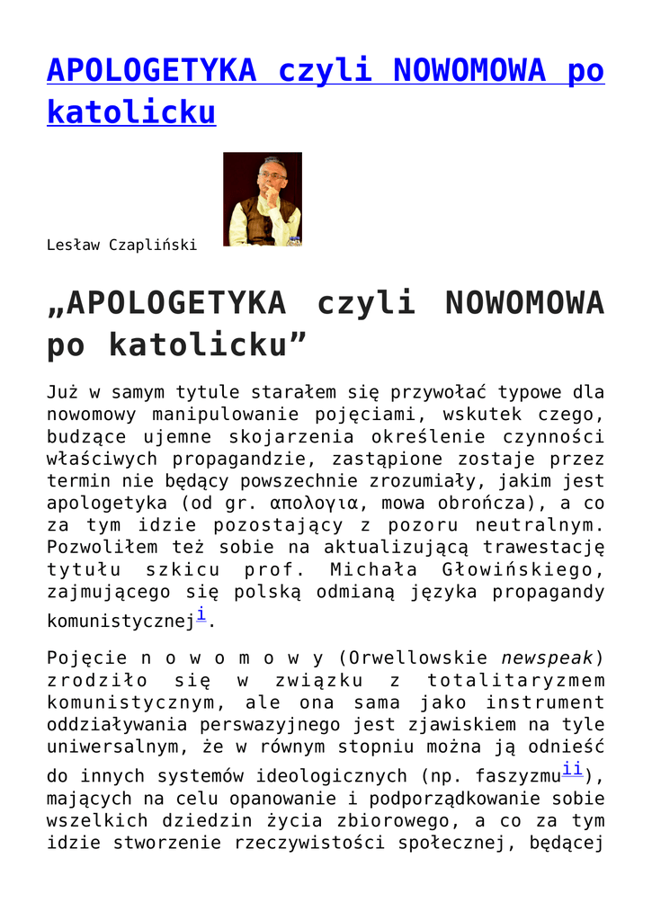 APOLOGETYKA czyli NOWOMOWA po katolicku