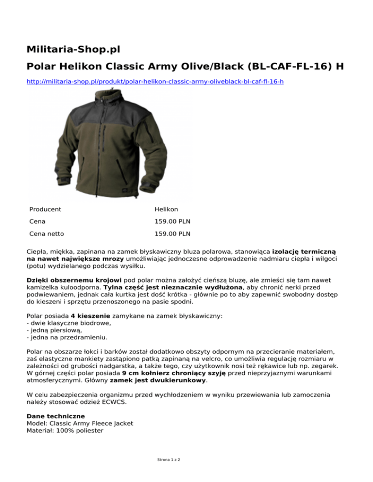 Militaria-Shop.pl Polar Helikon Classic Army Olive/Black (BL