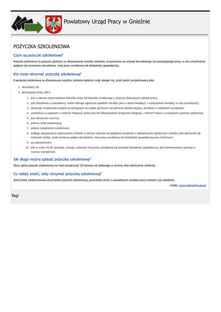 Pożyczka szkoleniowa - Powiatowy Urząd Pracy w Gnieźnie