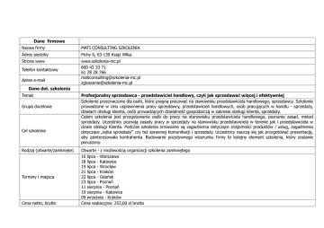 Dane firmowe Nazwa firmy MATI CONSULTING SZKOLENIA Adres