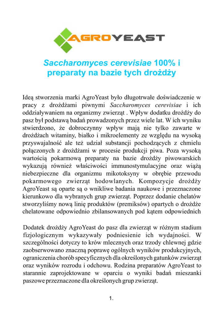 Saccharomyces cerevisiae 100% i preparaty na bazie