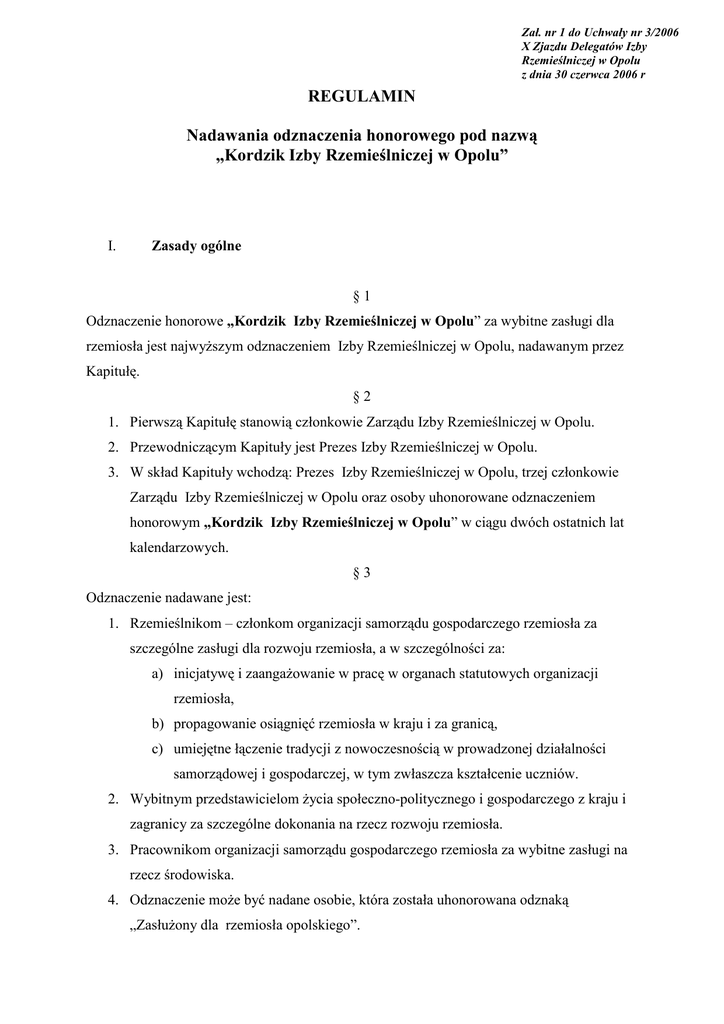 kordzik regulamin - Izba Rzemieślnicza w Opolu