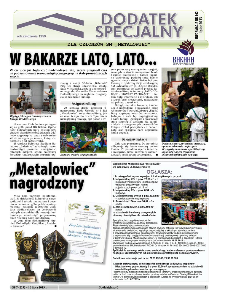 Dodatek specjalny lipiec 2013 - Spółdzielnia Mieszkaniowa