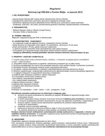 Regulamin Gminnej Ligi ORLIKA o Puchar Wójta w sezonie 2014