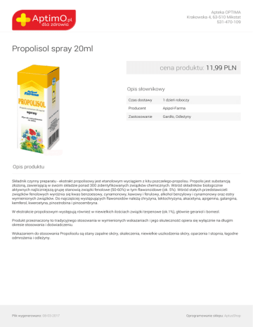 Propolisol spray 20ml - AptimO.pl Dla zdrowia..