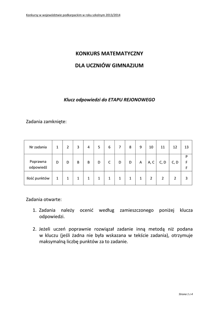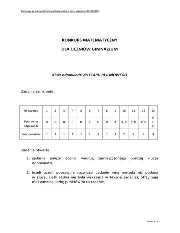 KONKURS MATEMATYCZNY DLA UCZNIÓW GIMNAZJUM