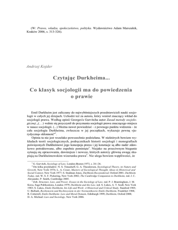 sytuują się opracowania, dawniejsze i nowsze, których autorzy główną uwagę skupiają na Durkheimowskim wizerunku prawa3. Nie ulega bowiem wątpliwości, że