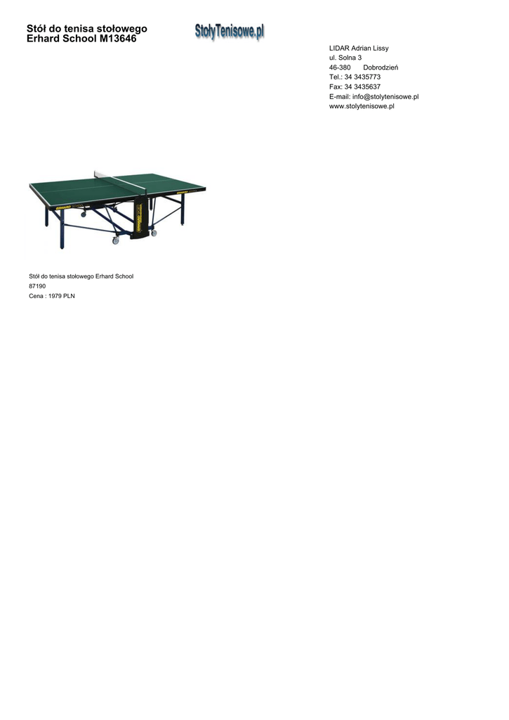 Stół do tenisa stołowego Erhard School M13646 LIDAR Adrian Lissy ul. Solna 3 46-380 Dobrodzień Tel.: 34 3435773 Fax: 34 3435637 E-mail: [email protected] www.stolytenisowe.pl Stół do tenisa stołowego Erhard School 87190 Cena : 1979 PLN