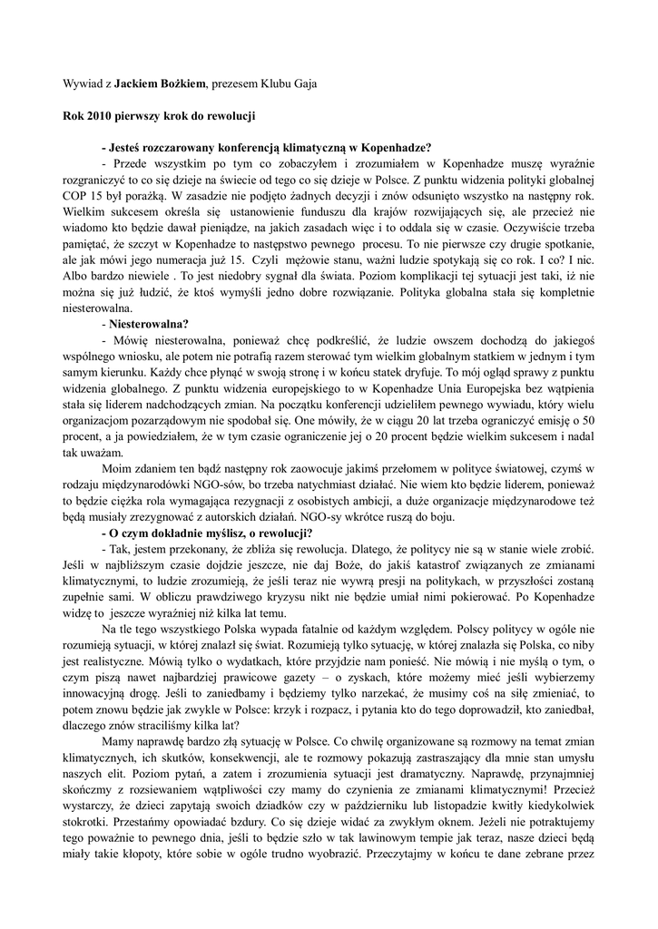 Wywiad z Jackiem Bożkiem, prezesem Klubu Gaja Rok 2010