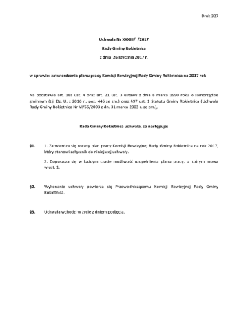 Druk 327 Uchwała Nr XXXIII/ /2017 Rady Gminy Rokietnica z dnia