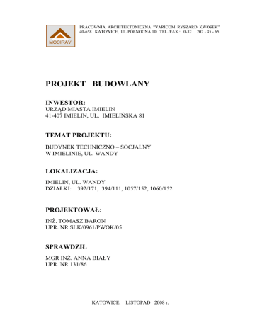 PRACOWNIA ARCHITEKTONICZNA "VARICOM RYSZARD KWOSEK” 40-658 KATOWICE, UL.PÓŁNOCNA 10 TEL./FAX.: 0-32 202 - 85 - 65 MOCIRAV PROJEKT BUDOWLANY INWESTOR: URZĄD MIASTA IMIELIN 41-407 IMIELIN, UL. IMIELIŃSKA 81 TEMAT PROJEKTU: BUDYNEK TECHNICZNO – SOCJALNY W IMIELINIE, UL. WANDY LOKALIZACJA: IMIELIN, UL. WANDY DZIAŁKI: 392/171, 394/111, 1057/152, 1060/152 PROJEKTOWAŁ: INŻ. TOMASZ BARON UPR. NR SLK/0961/PWOK/05 SPRAWDZIŁ MGR INŻ. ANNA BIAŁY UPR. NR 131/86 KATOWICE, LISTOPAD 2008 r. BUDYNEK TECHNICZNO – SOCJALNY W IMIELINIE, UL. WANDY KONSTRUKCJA Zawartość opracowania Opis techniczny Rysunki 2 BUDYNEK TECHNICZNO – SOCJALNY W IMIELINIE, UL. WANDY KONSTRUKCJA Spis rysunków K-01 K-02 K-03 K-04 K-05 K-06 K-07 K-08 K-09 K-10 K-11 K-12 K-13 K-14 K-15 K-16 K-17 K-18 K-19 K-20 K-21 K-22 K-23 K-24 K-25 K-26 K-27 K-28 K-29 K-30 K-31 K-32 K-33 K-34 K-35 K-36 K-37 K-38 K-39 K-40 K-41 K-42 K-43 K-44 K-45 K-46 K-47 Rzut dachu, przekrój A1-A1 Przekroje A3-A3, A5-A5, A7-A7 Przekroje A2-A2, A4-A4, A6-A6 Marki m1, m2 Stężenia std1÷std6, łączniki LP1, LP2, LB1 Belka b2 Belka b1 Tężnik t1 Wiązar w1 Płatew pl 1 Płatew pl 2 Płatew pl 3 Płatew pl 4 Płatew pl 5 Płatew pl 6 Płatew pl 7 Płatew pl 8 Płatew pl 9 Płatew pl 10 Płatew pl 11 Płatew pl 12 Płatew pl 13 Płatew pl 14 Płatew pl 15 Płatew pl 16 Płatew pl 17 Płatew pl 18 Płatew pl 19 Płatew pl 20 Płatew pl 21 Płatew pl 22 Płatew pl 23 Płatew pl 24 Płatew pl 25 Płatew pl 26 Płatew pl 27 Płatew pl 28 Płatew pl 29 Płatew pl 30 Płatew pl 31 Płatew pl 32 Płatew pl 33 Płatew pl 34 Płatew pl 35 Płatew pl 36 Ściągi sc 1, s.c. 2 Ściag sc 3 K-101 Rzut fundamentów budynku, zbrojenie ław i belek podwalinowch, stopa Sf-1 K-102 Stopa fundamentowa Sf-1’, Sf-2 3 BUDYNEK TECHNICZNO – SOCJALNY W IMIELINIE, UL. WANDY KONSTRUKCJA K-103 Stopa fundamentowa Sf-2’, Sf-3 K-104 Rzut konstrukcji budynku, zbrojenie wieńców żelbetowych K-105 Widoki zewnętrznych ścian budynku: A-A, B-B, C-C, D-D K-106 Zbrojenie słupów żelbetowych: S-1, S-1’, S-2, S-2’, S-3, S-3’ K-107 K-108 Ramy stalowe Rm-1, Rm-1’, Rm-1’’ Ramy stalowe Rm-3, Rm-3’, Rm-3’’ K-109 Ramy stalowe Rm-2, Rm-5, Rm-5’ K-110 Elementy ryglówki K-111 K-112 Szczegóły mocowania elementów ryglówki Wykaz blach stalowych K-113 Belka stalowa Bs-1, Bs-2 K-114 Belka stalowa Bs-3, Bs-4 K-115 K-116 Belka stalowa Bs-5, Bs-6 K-117 Belka stalowa Bs-9, Bs-10 K-118 Belka stalowa Bs-11, Bs-12 K-119 Belka stalowa Bs-13, Bs-14 Belka stalowa Bs-7, Bs-8 4 BUDYNEK TECHNICZNO – SOCJALNY W IMIELINIE, UL. WANDY KONSTRUKCJA Spis treści 1. Inwestor 2. Zamawiający 3. Przedmiot opracowania 4. Lokalizacja 5. Podstawa opracowania 6. Warunki gruntowo – wodne 7. Warunki geologiczno - górnicze 8. Opis konstrukcji 8.1. Opis budynku 8.2. Fundamenty 8.3. Konstrukcja nośna 8.4. Konstrukcja dachu 8.5. Wieńce, nadproża 8.6. Ściany nośne 8.7. Ryglówka 9. Materiały 10. Zabezpieczenia antykorozyjne 10.1. Fundamenty 10.2. Konstrukcja stalowa 11. Uwagi końcowe 12. Wyroby budowlane 13. Zagadnienia BHP 5 BUDYNEK TECHNICZNO – SOCJALNY W IMIELINIE, UL. WANDY KONSTRUKCJA Opis techniczny 1. Inwestor Urząd Miasta Imielin 41-407 Imielin, ul. Imielińska 81 2. Zamawiający Pracownia Architektoniczna "Varicom” Ryszard Kwosek 40-658 Katowice, ul. Północna 10 3. Przedmiot opracowania Przedmiotem opracowania jest projekt wykonawczy konstrukcji budynku techniczno socjalnego 4. Lokalizacja Projektowany obiekt zlokalizowano na działkach nr 392/171, 1060/152 w Imielinie przy ul. Wandy 394/111, 1057/152, 5. Podstawa opracowania „Dokumentacja geotechniczna dla potrzeb oczyszczalni ścieków w Imielinie” z kwietnia 2003r. opracowana przez Firmę Geotechniczną „GEOBUD” S.C. z siedzibą w Mińsku Mazowieckim; Pismo z Okręgowego Urzędu Górniczego w Katowicach w sprawie określenia warunków górniczo – geologicznych dla projektowanego zamierzenia inwestycyjnego pn.: „Budowy budynku zaplecza techniczno – socjalnego dla potrzeb obsługi sieci wodociągowej w mieście Imielin” nr KAT/5141/1401/08/Ks z 20 sierpnia 2008; Ustalenia z Zamawiającym; Ustalenia międzybranżowe; 6. Warunki gruntowo – wodne Cytat z „Dokumentacji geotechnicznej dla potrzeb oczyszczalni ścieków w Imielinie” z kwietnia 2003r. opracowanej przez Firmę Geotechniczną „GEOBUD” S.C. z siedzibą w Mińsku Mazowieckim; 5. Wnioski i zalecenia 1. W podłożu projektowanej oczyszczalni ścieków w Imielinie przy ul. Wandy stwierdzono występowanie od powierzchni terenu gruntów próchniczych tworzących warstwę o miąższości nie przekraczającej 0,3m (I warstwa geotechniczna). Głębiej występuje kompleks gruntów sypkich, wodnolodowcowych piasków średnich (warstwa II) z nielicznymi przewarstwieniami pyłów o miąższości dochodzącej do 0,8m. 2. Grunty występujące w podłożu projektowanej pompowni są gruntami nośnymi pozwalającymi na bezpośrednie posadowienie fundamentów. 6 BUDYNEK TECHNICZNO – SOCJALNY W IMIELINIE, UL. WANDY KONSTRUKCJA 3. Wody gruntowe na terenie przeznaczonym pod oczyszczalnię zalegają w piaskach wodnolodowcowych. Zwierciadło wód gruntowych jest swobodne i zalega na głębokości od 2,6m p.p.t.. do 4,1m p.p.t. na rzędnej 239,6 – 240,2m n.p.m. (…. 5. Odwodnienie wykopu na okres budowy należy prowadzić za pomocą igłofiltrów. Koniec cytatu. Uwagi: Roboty ziemne należy prowadzić w porze suchej; Nie można dopuścić do zalania dna wykopu; Wykop należy odebrać przez uprawnionego geotechnika z potwierdzeniem wpisem do dziennika budowy; 7. Warunki geologiczno - górnicze Na podstawie pisma Pismo z Okręgowego Urzędu Górniczego w Katowicach w sprawie określenia warunków górniczo – geologicznych dla projektowanego zamierzenia inwestycyjnego pn.: „Budowy budynku zaplecza techniczno – socjalnego dla potrzeb obsługi sieci wodociągowej w mieście Imielin” nr KAT/5141/1401/08/Ks z 20 sierpnia 2008, przyjęto Teren inwestycji us