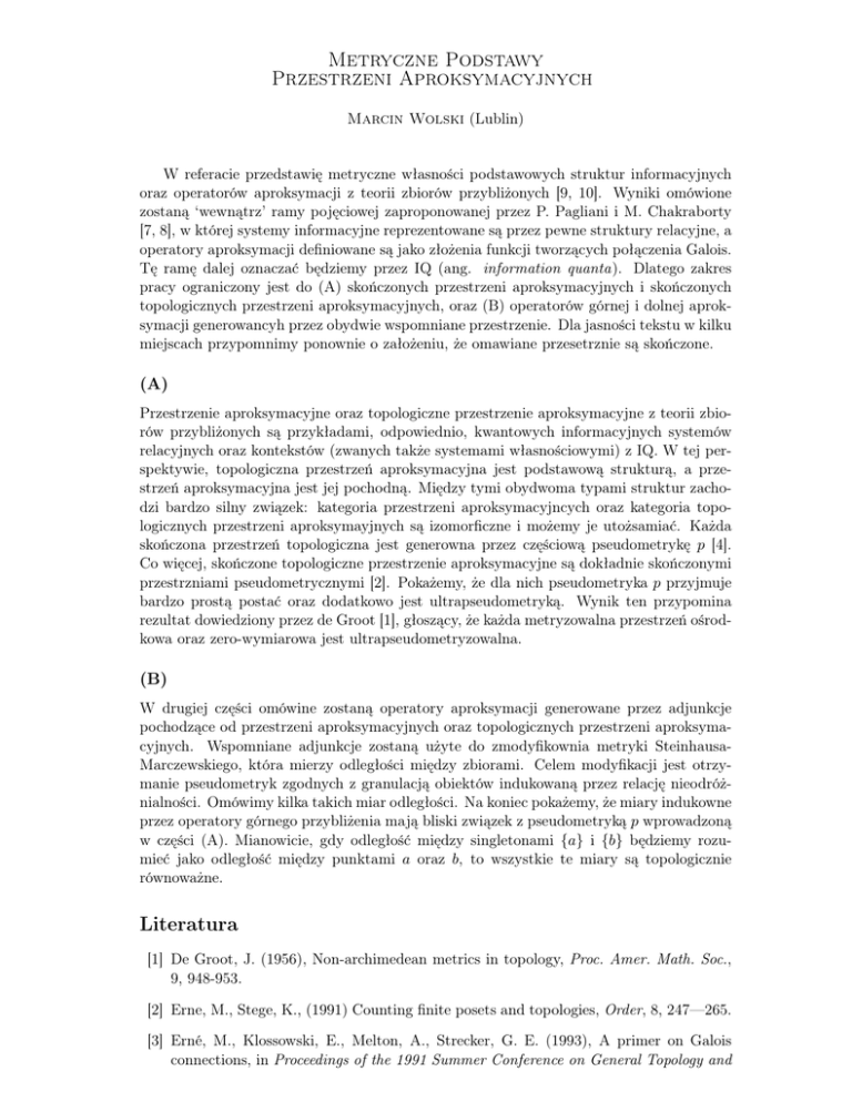 Metryczne Podstawy Przestrzeni Aproksymacyjnych Literatura