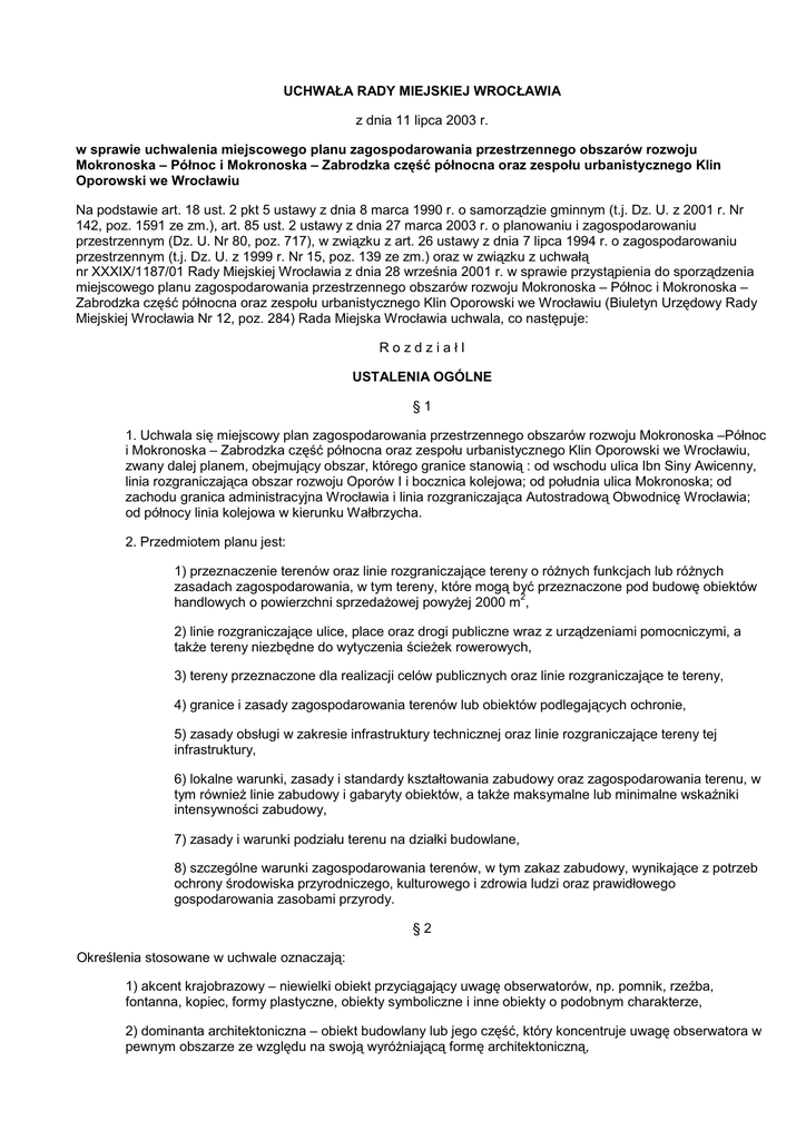 UCHWAŁA RADY MIEJSKIEJ WROCŁAWIA z dnia 11 lipca 2003 r