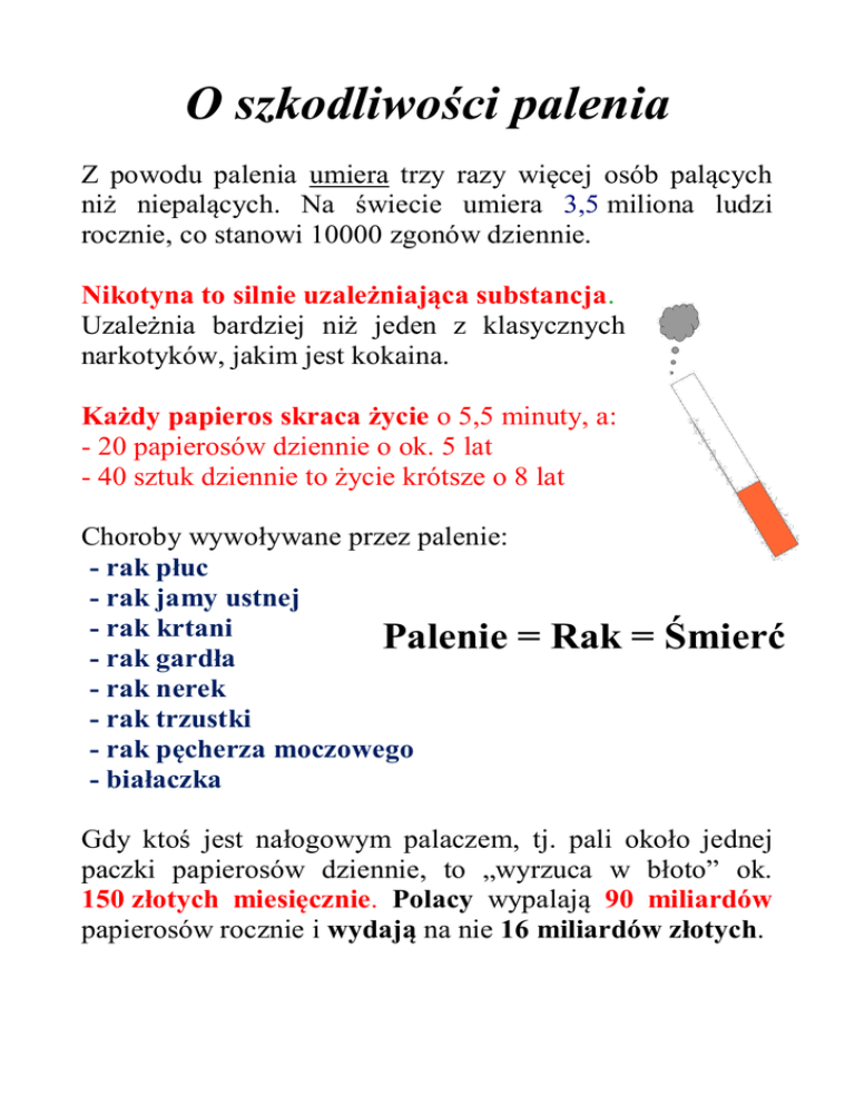O szkodliwości palenia