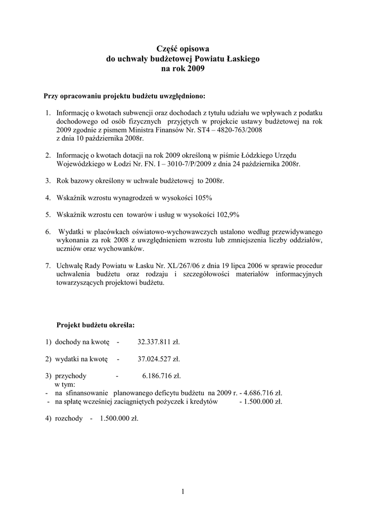 Część opisowa do uchwały budŜetowej Powiatu Łaskiego na rok