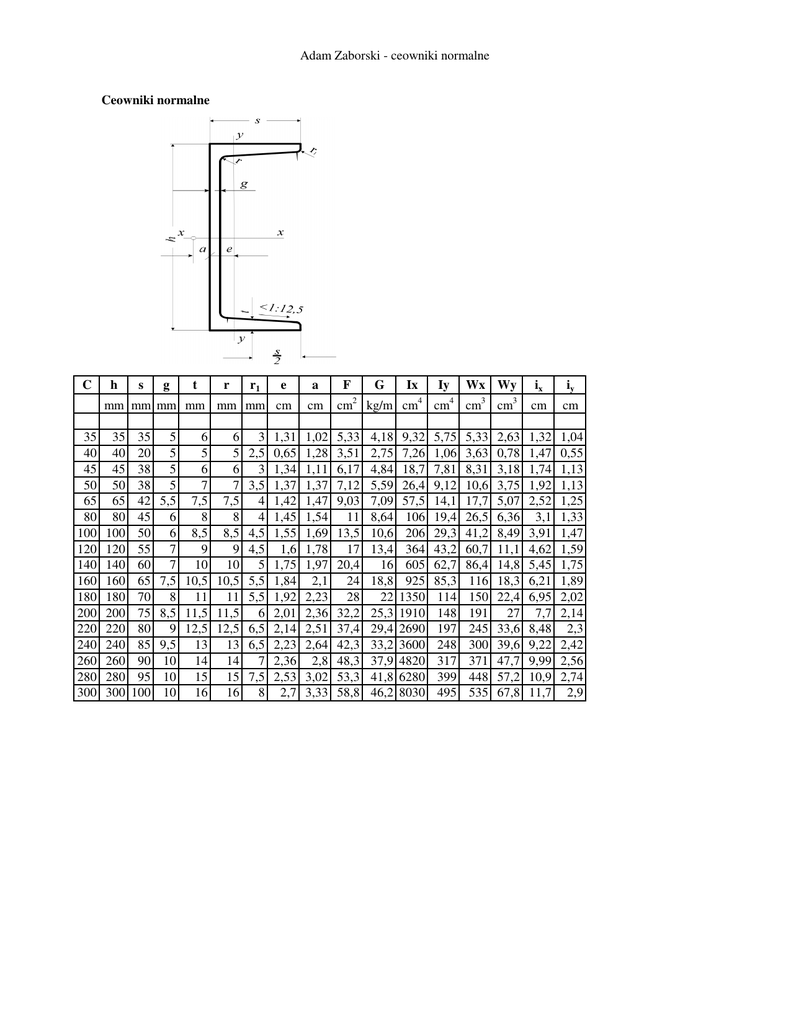 Adam Zaborski - ceowniki normalne Ceowniki normalne C hsgtr r1