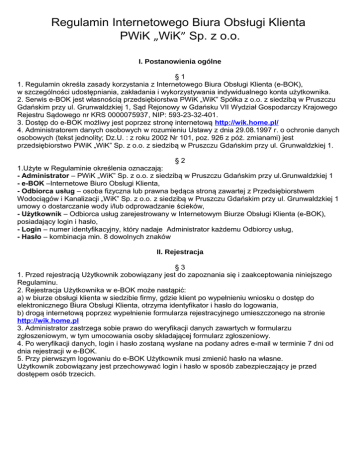 Regulamin Internetowego Biura Obsługi Klienta PWiK „WiK” Sp. z o.o.