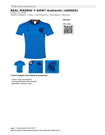 http://de.fanzone.pl REAL MADRID T-SHIRT Authentic (ADIDAS) product cod: 15943 category: Kategorie > Kluby > Liga hiszpańska > Real Madryt > Mężczyźni €63,00 QR code: T-Shirt Adidas Real Madrid Authentic - Farbe: blau-dunkelblau - hochqualifizierte Baumwolle - gewebtes Adidas-Logo page: 1/1 print date: 08-03-2017 http://de.fanzone.pl/de/real-madryt-t-shirt-authentic-adidas.html
