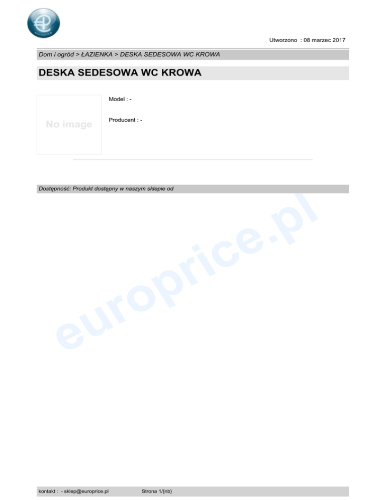 Utworzono : 08 marzec 2017 Dom i ogród > ŁAZIENKA > DESKA SEDESOWA WC KROWA DESKA SEDESOWA WC KROWA Model : - No image Producent : - l .p Dostępność: Produkt dostępny w naszym sklepie od o r u e kontakt : - [email protected] r p e ic Strona 1/{nb}