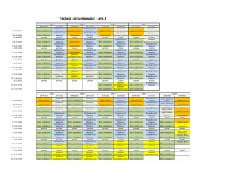 Technik rachunkowości - sem. I Zjazd 1 28-02-2015 Zjazd 2 29-02-2015 1 08.00-08.45 Biuro rachunkowe 2 08.45-09.30 09.30-09.35 Biuro rachunkowe Rachunkowość finansowa Rachunkowość finansowa przerwa przerwa 3 09.35-10.20 Biuro rachunkowe 4 10.20-11.05 11.05-11.15 Biuro rachunkowe Rachunkowość finansowa Rachunkowość finansowa przerwa przerwa 5 11.15-12.00 6 12.00-12.45 12.45-12.50 Biuro rachunkowe Biuro rachunkowe Rachunkowość finansowa Rachunkowość finansowa przerwa 7 12.50-13.35 Biuro rachunkowe 8 13.35-14.20 14.20-14.45 Biuro rachunkowe 14-03-2015 język niemiecki język niemiecki przerwa język niemiecki język niemiecki przerwa język niemiecki podstawy przedsiębiorczości Zjazd 3 15-03-2015 Rachunkowość finansowa Rachunkowość finansowa przerwa Rachunkowość finansowa Rachunkowość finansowa przerwa Rachunkowość finansowa Rachunkowość finansowa przerwa przerwa przerwa Rachunkowość finansowa Rachunkowość finansowa podstawy przedsiębiorczości podstawy przedsiębiorczości Rachunkowość finansowa Rachunkowość finansowa 28-03-2015 język niemiecki język niemiecki przerwa Biuro rachunkowe Rachunkowość finansowa Rachunkowość finansowa przerwa przerwa Biuro rachunkowe Biuro rachunkowe Biuro rachunkowe przerwa Biuro rachunkowe Biuro rachunkowe 10 15.30-16.15 16.15-16.25 przerwa przerwa przerwa przerwa podstawy Działalność Działalność Biuro rachunkowe gospodarcza w branży przedsiębiorczości gospodarcza w branży Biuro rachunkowe podstawy Działalność Działalność Biuro rachunkowe gospodarcza w branży przedsiębiorczości gospodarcza w branży Biuro rachunkowe przerwa przerwa przerwa przerwa przerwa 11 16.25-17.10 Biuro rachunkowe 12 17.10-17.55 Biuro rachunkowe 9 14.45-15.30 Zjazd 4 29-03-2015 Działalność gospodarcza w branży Działalność gospodarcza w branży przerwa przerwa Rachunkowość finansowa Rachunkowość finansowa przerwa Rachunkowość finansowa Rachunkowość finansowa przerwa Rachunkowość finansowa Rachunkowość finansowa przerwa podstawy przedsiębiorczości podstawy przedsiębiorczości Zjazd 6 Zjazd 7 26-04-2015 09-05-2015 10-05-2015 16-05-2015 17-05-2015 Rachunkowość Działalność Działalność język niemiecki gospodarcza w branży Biuro rachunkowe gospodarcza w branży język niemiecki finansowa Rachunkowość Działalność Działalność język niemiecki gospodarcza w branży Biuro rachunkowe gospodarcza w branży język niemiecki finansowa przerwa przerwa przerwa przerwa przerwa przerwa Rachunkowość Działalność Działalność Biuro rachunkowe gospodarcza w branży Biuro rachunkowe gospodarcza w branży Biuro rachunkowe finansowa 11-04-2015 12-04-2015 Działalność język niemiecki gospodarcza w branży Działalność język niemiecki gospodarcza w branży przerwa przerwa Działalność Biuro rachunkowe gospodarcza w branży Biuro rachunkowe 1 08.00-08.45 2 08.45-09.30 09.30-09.35 3 09.35-10.20 4 10.20-11.05 11.05-11.15 Biuro rachunkowe Rachunkowość finansowa przerwa przerwa 5 11.15-12.00 Biuro rachunkowe 6 12.00-12.45 12.45-12.50 Biuro rachunkowe Rachunkowość finansowa Rachunkowość finansowa przerwa przerwa 7 12.50-13.35 Biuro rachunkowe 8 13.35-14.20 14.20-14.45 Biuro rachunkowe Rachunkowość finansowa Rachunkowość finansowa przerwa przerwa 9 14.45-15.30 Biuro rachunkowe 10 15.30-16.15 16.15-16.25 Biuro rachunkowe przerwa 11 16.25-17.10 Biuro rachunkowe 12 17.10-17.55 Biuro rachunkowe Rachunkowość finansowa podstawy przedsiębiorczości przerwa podstawy przedsiębiorczości podstawy przedsiębiorczości Biuro rachunkowe Rachunkowość finansowa przerwa przerwa Biuro rachunkowe Rachunkowość finansowa Rachunkowość finansowa przerwa przerwa Biuro rachunkowe Biuro rachunkowe Rachunkowość finansowa Rachunkowość finansowa przerwa przerwa Biuro rachunkowe Biuro rachunkowe Biuro rachunkowe przerwa Biuro rachunkowe Biuro rachunkowe Rachunkowość finansowa podstawy przedsiębiorczości przerwa podstawy przedsiębiorczości podstawy przedsiębiorczości Biuro rachunkowe Rachunkowość finansowa przerwa przerwa Biuro rachunkowe Rachunkowość finansowa Rachunkowość finansowa przerwa przerwa Biuro rachunkowe Biuro rachunkowe Rachunkowość finansowa Rachunkowość finansowa przerwa przerwa Biuro rachunkowe Biuro rachunkowe Biuro rachunkowe przerwa Biuro rachunkowe Biuro rachunkowe podstawy przedsiębiorczości podstawy przedsiębiorczości przerwa podstawy przedsiębiorczości podstawy przedsiębiorczości przerwa Biuro rachunkowe Biuro rachunkowe Rachunkowość finansowa Rachunkowość finansowa przerwa przerwa Biuro rachunkowe Biuro rachunkowe Rachunkowość finansowa Rachunkowość finansowa przerwa przerwa Biuro rachunkowe Biuro rachunkowe Rachunkowość finansowa Rachunkowość finansowa przerwa przerwa Biuro rachunkowe Rachunkowość finansowa Biuro rachunkowe Zjazd 5 25-04-2015 Rachunkowość finansowa przerwa Zjazd 8 30-05-2015 język niemiecki język niemiecki przerwa Zjazd 9 31-05-2015 Rachunkowość finansowa Rachunkowość finansowa przerwa 13-06-2015 14-06-2015 Egzamin - Rachunkowość finansowa język niemiecki Egzamin - Rachunkowość finansowa przerwa język niemiecki przerwa Biuro rachunkowe Rachunkowość finansowa Rachunkowość finansowa Egzamin - Działalność gospodarcza w branży ekonomicznej Egzamin - Działalność gospodarcza w branży ekonomicznej przerwa przerwa przerwa język niemiecki przerwa Biuro rachunkowe język niemiecki Biuro rachunkowe Egzamin - podstawy przedsiębiorczości Biuro rachunkowe Biuro rachunkowe Rachunkowość finansowa Rachunkowość finansowa przerwa przerwa Biuro rachunkowe Biuro rachunkowe Rachunkowość finansowa Rachunkowość finansowa przerwa przerwa Biuro rachunkowe Biuro rachunkowe Biuro rachunkowe podstawy przedsiębiorczości podstawy przedsiębiorczości przerwa przerwa Biuro rachunkowe Egzamin - podstawy przedsiębiorczości Biuro rachunkowe Egzamin - Biuro rachunkowe przerwa przerwa Biuro rachunkowe Egzamin - Biuro rachunkowe B