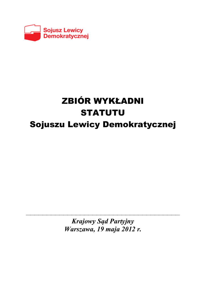 ZBIÓR WYKŁADNI STATUTU Sojuszu Lewicy Demokratycznej