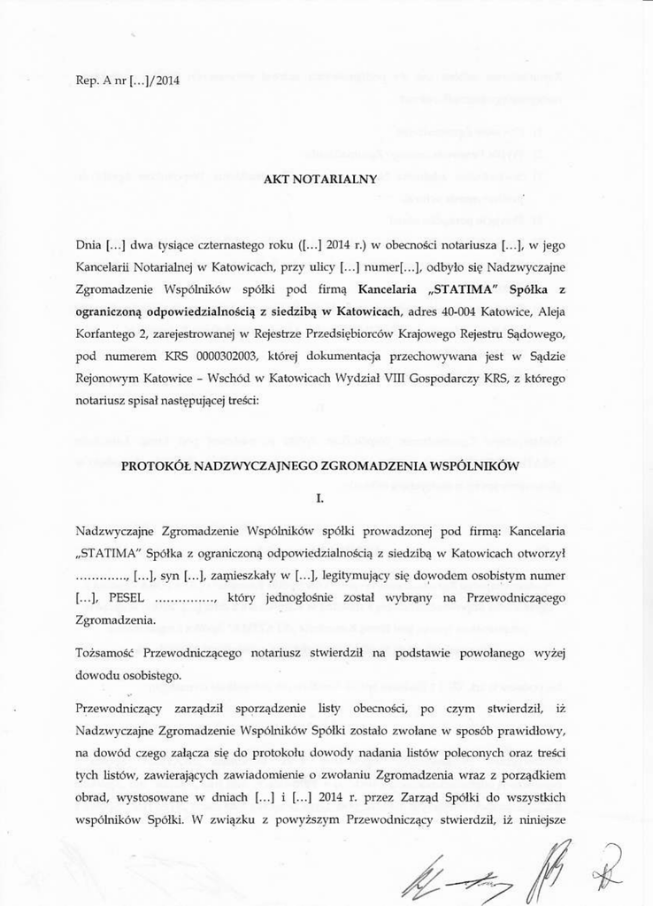 zgońaiŁenia wspólnikó{ sPółki Kan €lańt ,,STATIMA" sPółka z