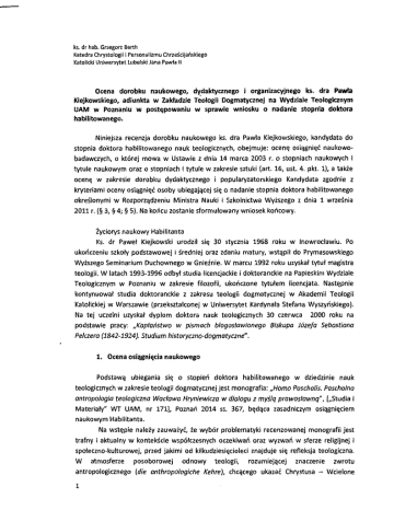 ks. dr Paweł Kiejkowski - recenzja - ks. dr hab. G. Barth