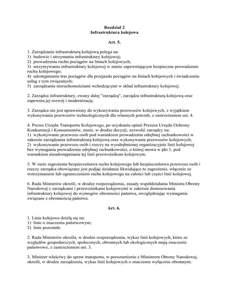 Rozdział 2 Infrastruktura kolejowa Art. 5. 1. Zarządzanie